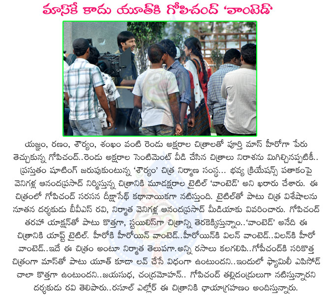 'వాంటెడ్'గా వస్తున్నా గోపీచంద్!